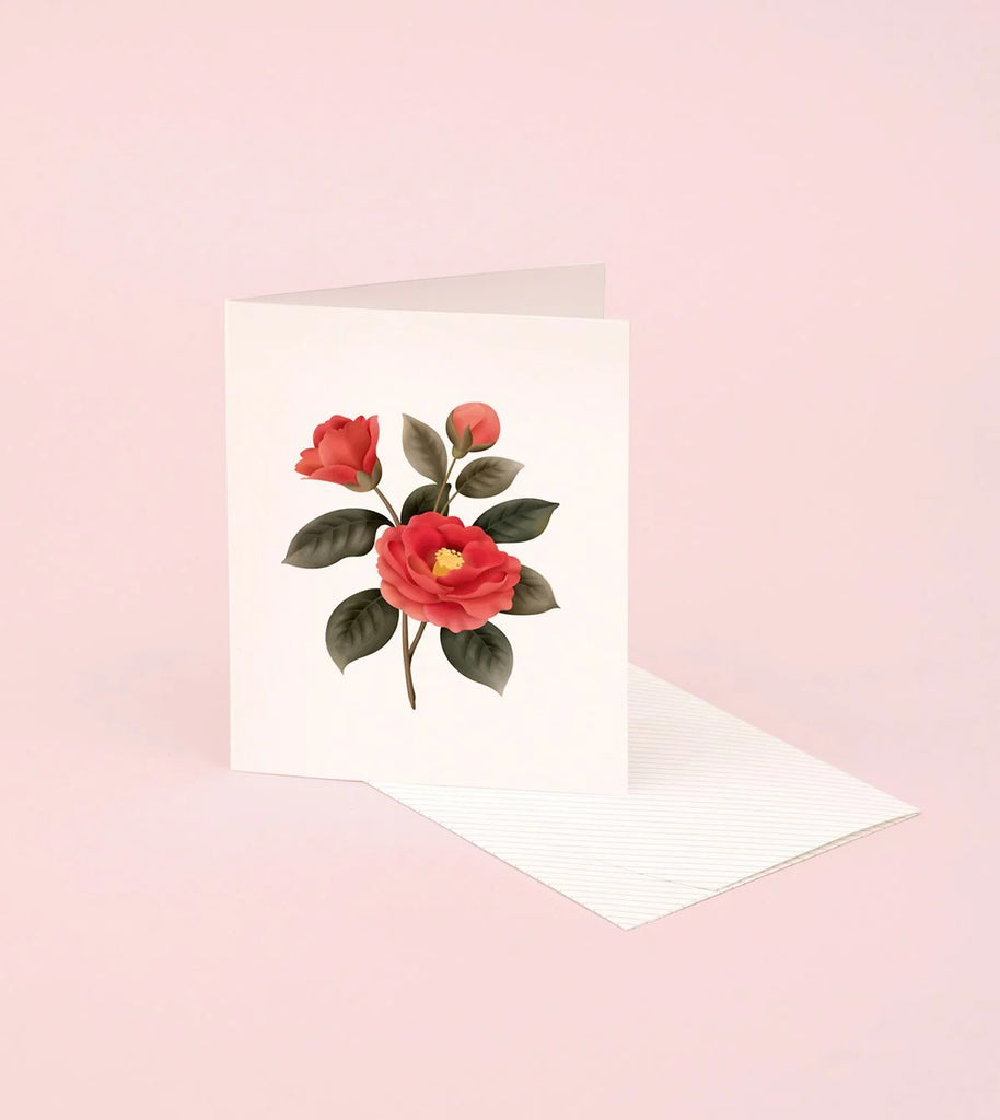 While many camellia species bear no scent, the thick layers of the bright red petals of the camellia japonica breathe out a fragrance that is a composition of fantasy. A sparkling collection of feminine florals and powdery musk, this camellia will have you dreaming of gardens in full bloom all year long.