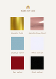 Your gift will be carefully personalised, wrapped in tissue, tucked in with our beautiful gift card with your message of love, and wrapped in our luxe gold-embossed gift box and finished with a bow.