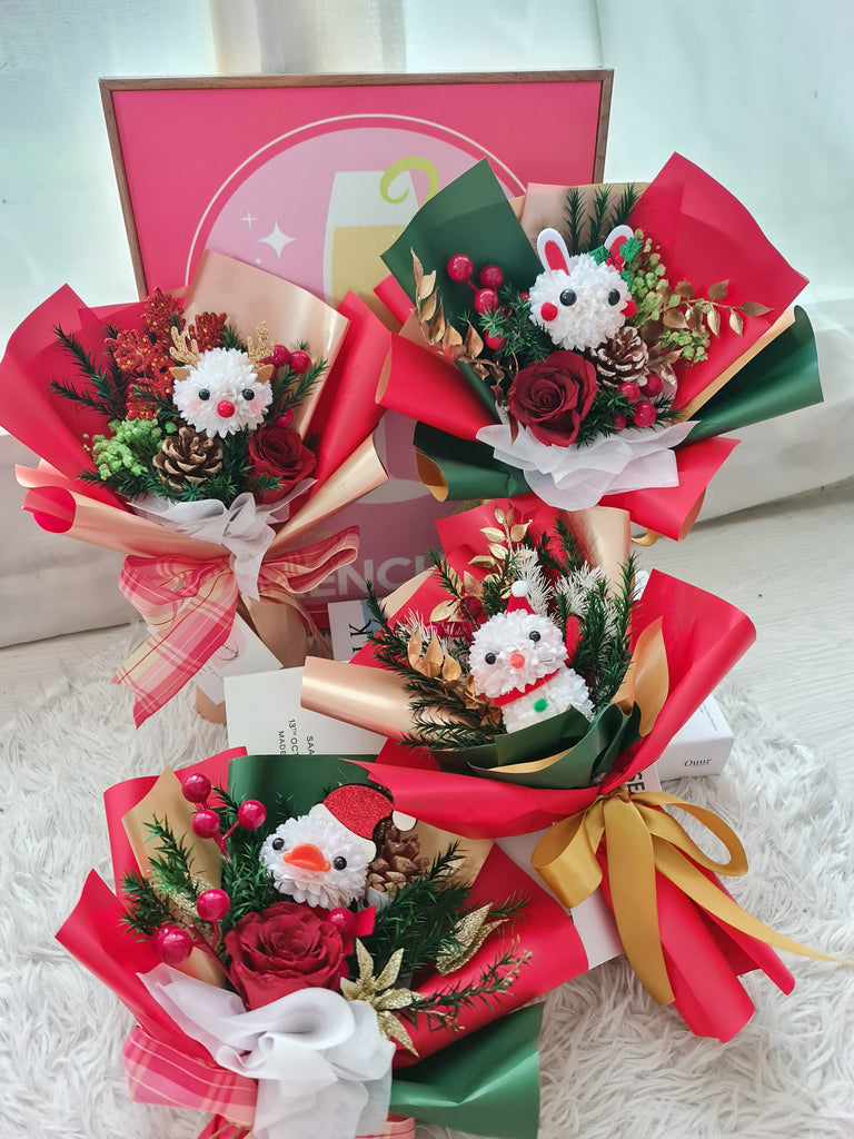 Christmas Character Preserved Flower Bouquet (Snowman, Reindeer, Bunny, Duckie) [Christmas 2023 | New Year 2024]