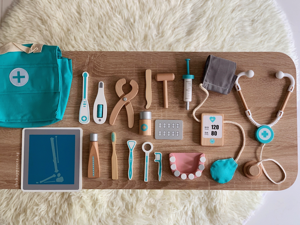Designed to provide an imaginative pretend play experience while learning, the doctor/dentist play set also gives your little ones practical life skills, independence, empathy and care for others. They can play the role of the doctor, take other's blood pressure, listen to their heartbeat and even give injections. They will also learn more about what happens at the dentist’s office and understand the importance of keeping their teeth strong and healthy.