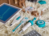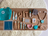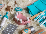Our Wooden Doctor/Dentist Pretend-Play Set will allow your little ones to role play as both a doctor and a dentist!