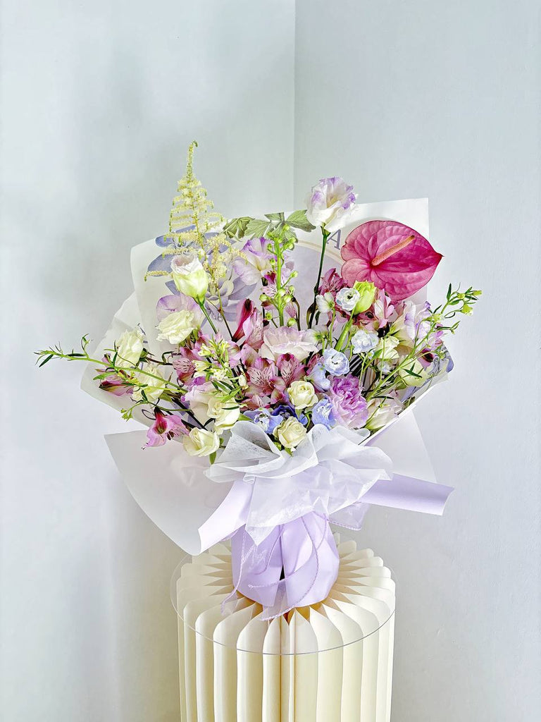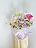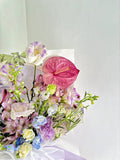 Step into a world of vibrant beauty with the "Eternal Garden" bouquet. A striking blend of purple anthurium and delicate white astilbe creates a graceful contrast, while the rich purple alstroemeria and soft blue delphinium bring depth and tranquility. Eustoma adds a touch of elegance, and rose sprays offer a timeless symbol of affection. Together, these flowers form a harmonious garden in full bloom, capturing the enduring beauty of a mother's love—forever flourishing and ever-present, just like an eternal garden.