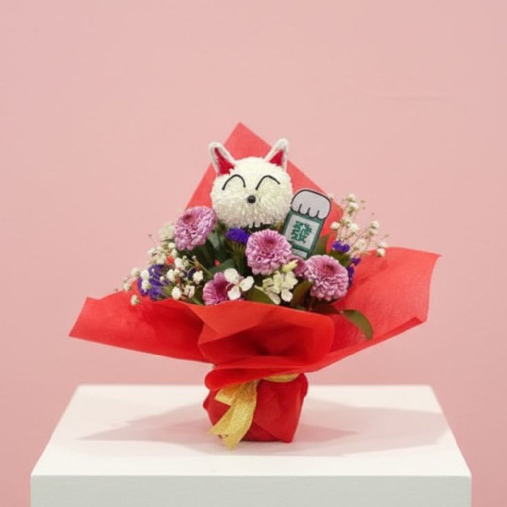 This Maneki-neko floral arrangement is a unique and meaningful gift that is perfect for any occasion, whether it's a birthday,