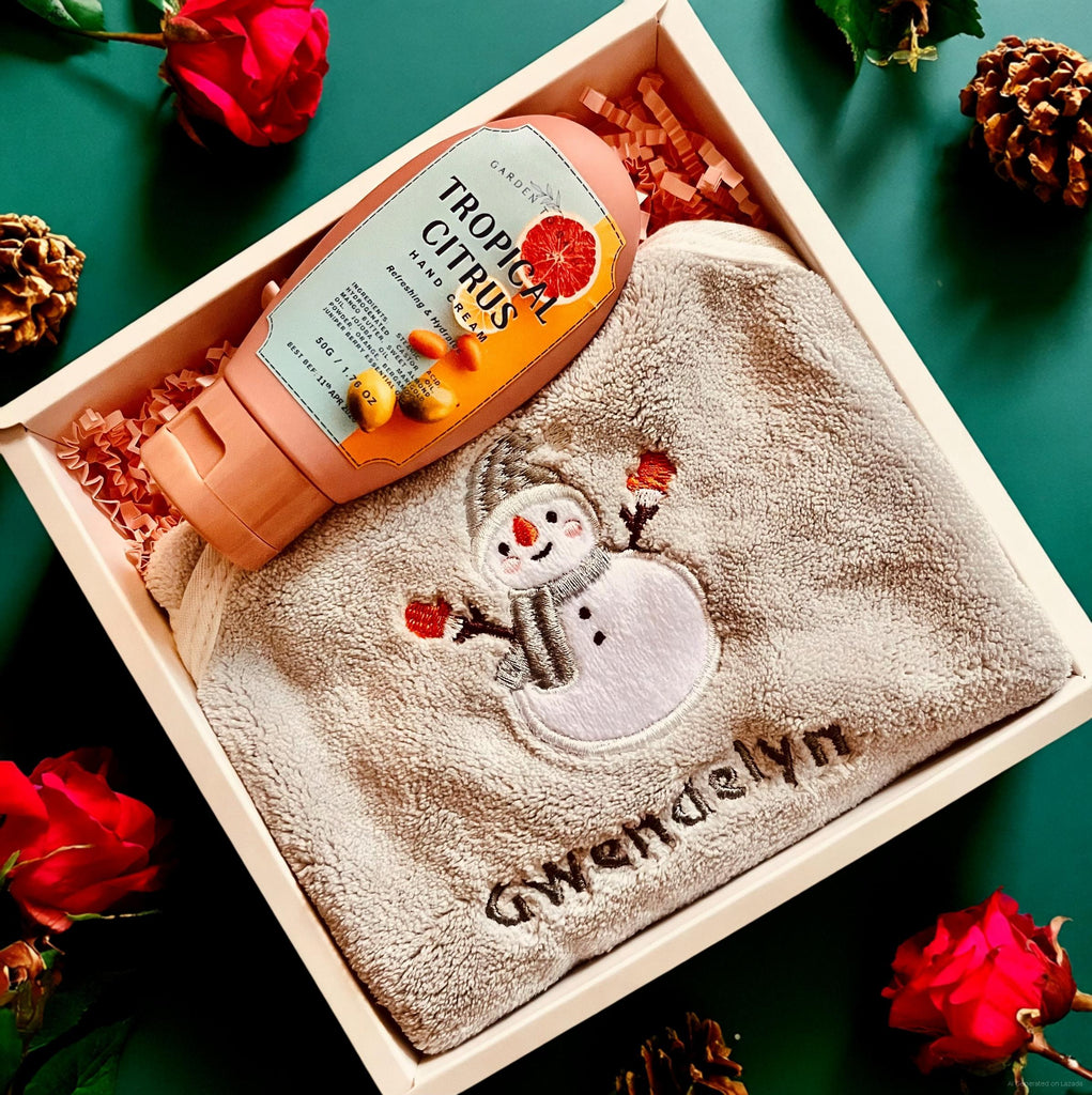 - Comes with 1x of multipurpose towels 30cm x 30cm (dark grey snowman) with name embroidery;