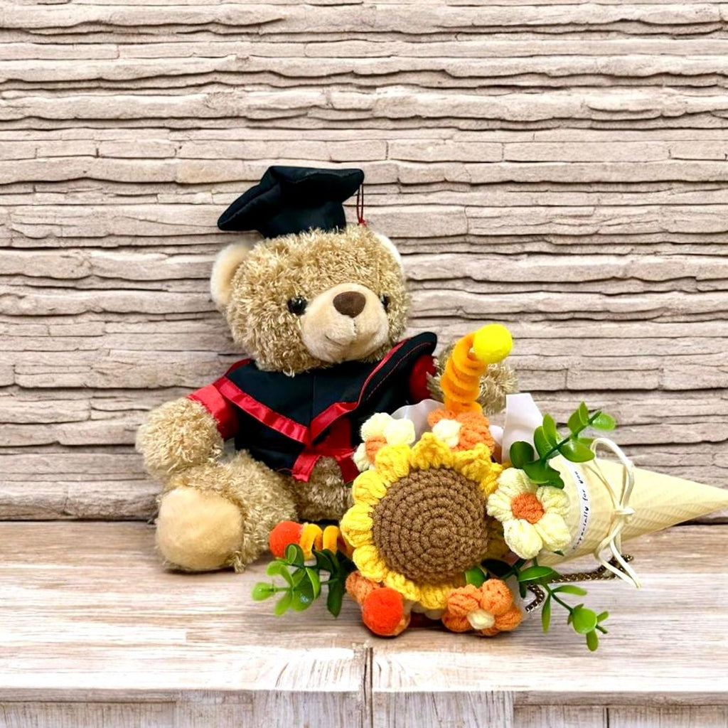 Personalised Graduation Bear with Crochet Bouquet Tube (Nationwide Delivery)