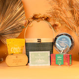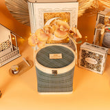 - Green Bamboo Round Gift Box with Flowers and Engraved Raya Wish